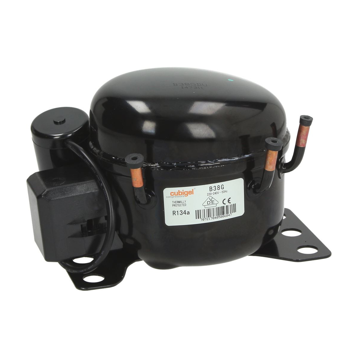 Vollhermetischer Verdichter B38G, 1/8 HP, Cubigel Kompressor für das Kältemittel R134a, für den Hoch- und Mitteldruckbereich (HMBP).