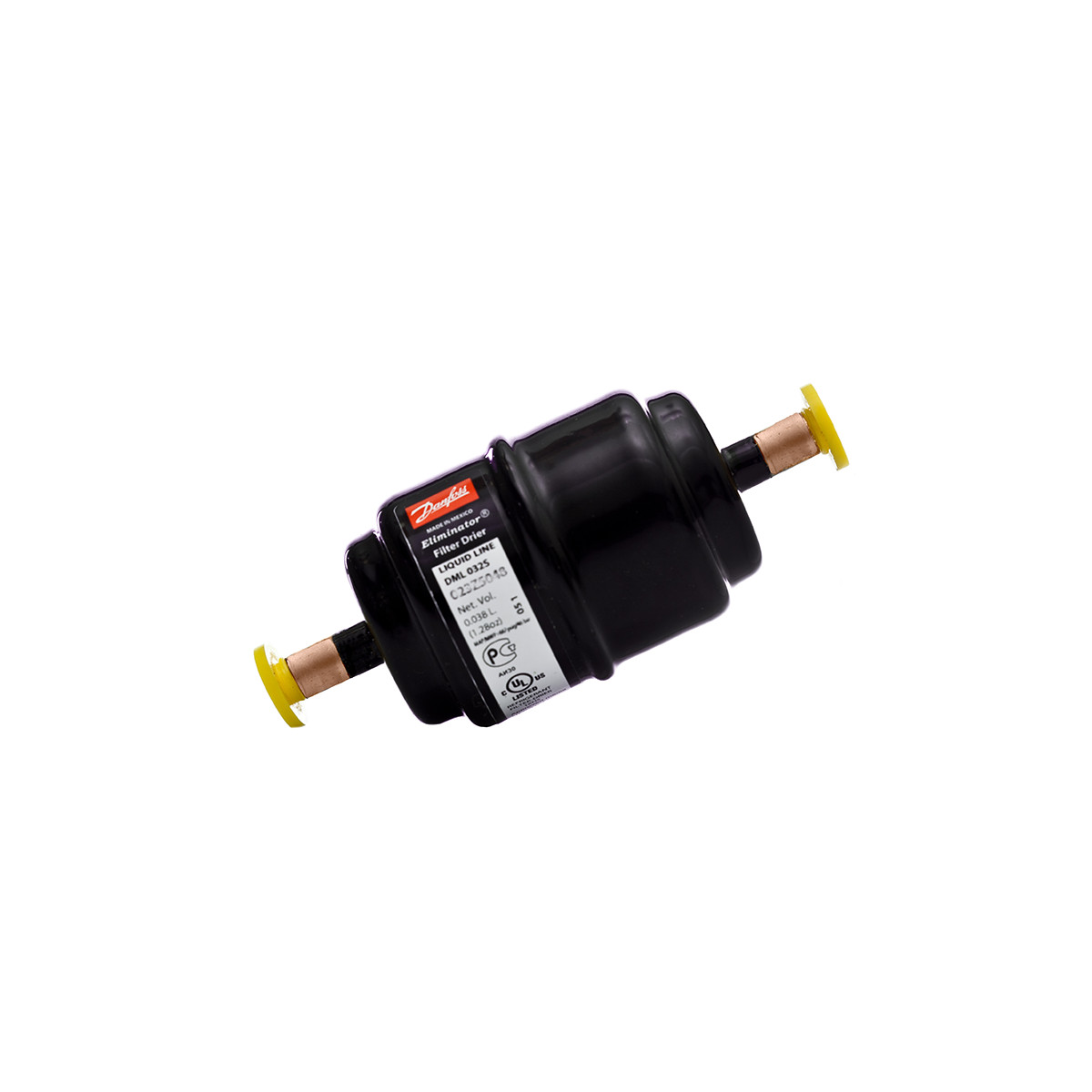Filtertrockner DML 164s 023Z4579 | 023Z4580 Danfoss 12 mm Löt / ODF, Eliminator mit verkupferter Stahllötanschluss, 100% 3A-Molekularsieb, optimiert für HFKW Kältemittel und POE oder PAG Ölen.