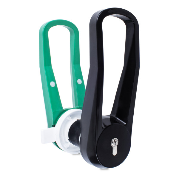 Verschluss 3.31.0654.2 STUV links komplett für Kühl- und Tiefkühlraumtüren (Lock for walk-in-freezers and deep freezers) mit Innen-und Außenhebel. Der Verschluss ist abschließbar mit Profilzylinder und Schlüssel.